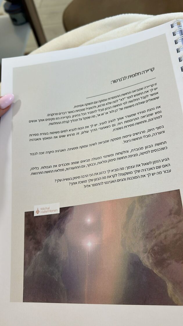 הבלופרינט מדריך עומק אישי וייחודי שנכתב במיוחד בשבילך בהתאמה לבודיגרף שלך - שמגלה את האנרגיה הטבעית שלך: הכוחות, החזון, הדרך לקבל החלטות נכונות, והפוטנציאל שעוד לא נגעת בו. מה יש בתוך הבלופרינט?